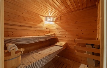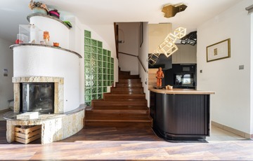A hangulatról vízteres kandalló gondoskodik, amely nemcsak látvány, de komoly hőtermelő is.