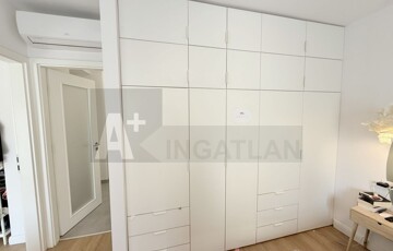A vételár részét képezik : a gépesített konyhabútor és a méretre gyártott , 3 gardrób szekrény is , amelyek illeszkednek a lakás egységes stílusához.
