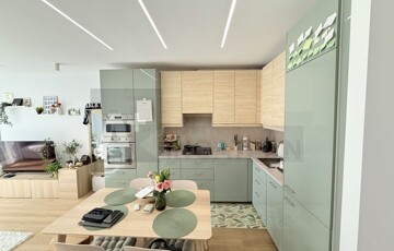 A lakás az elmúlt években teljesen megújult , belső építész tervei alapján készült, ahol a cél a modern elegancia és a praktikus kihasználhatóság ötvözése volt. A felújítás során különös figyelmet fordítottak az elegáns színharmóniára. A belső terekben a pisztácia , lágy bézs , tiszta fehér ,nemes szürke árnyalatai dominálnak , amelyeket a kiegészítőkkel és a meleg fa felületekkel tettek otthonossá.