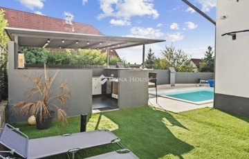 2 fürdőszobával ,garázzsal medencével , medencénél bár is van. kamera rendszerrel el látott. Full panoráma van az egész mecskeoldalra! Parkolás 5 auto részére megoldott.!