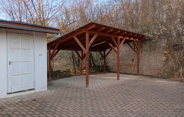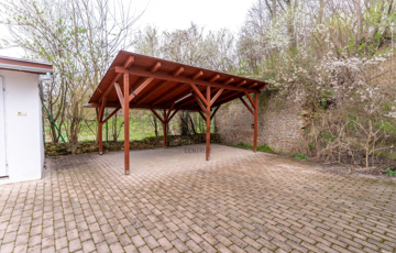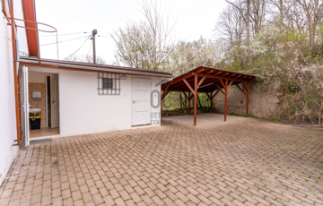 Az udvarban fedett beálló és nyitott parkoló is rendelkezésre áll.