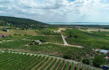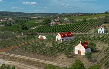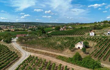 legmodernebb kialakítással, ami lehetővé teszi a gépi művelést.</p><p>- területre 100 m<sup>2</sup> alapterületű ház építhető egy 63 m<sup>2</sup>-es földpincével. (kérésre látványterv áll rendelkezésre)</p><p>-ivóvíz, áram a telken belül</p><p>-csatorna derítővel megoldható - Szent Balázs hegy lábánál található, így elvehetetlen gyönyörű panoráma