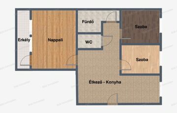 Az étkezőből nyíló, időtálló járólappal burkolt folyosóról közelíthetők meg a lakás privát terei. Az ingatlan nagyon jó elosztású, itt mindennek meg lesz a helye, ami köszönhető az előtérben található gardróbszekrénynek és a külön nyíló szobáknak, ami lehetőséget biztosít arra, hogy minden lakó számára adott legyen a privát szféra. A fürdőszoba és WC külön helyiségben helyezkednek el, ami különösen komfortos, ha több lakója is van a lakásnak. A lakás igazi szíve a fénnyel teli tágas és világos nappali, ahová jó megérkezni. Az innen nyíló erkély tovább bővíti az életteret, ahol egy kis levegőzés vagy pár nyugodt perc igazi feltöltődést jelent a nap végén.