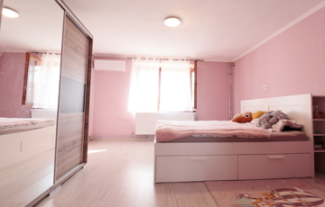 A ház jó elosztású, kényelmes szobákkal rendelkezik, tágas, napfényes terekkel, így családok számára ideális otthon. Az ingatlanban modern, gépesített konyha található szép burkolatokkal.