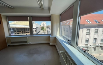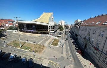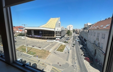 Győr-Belvárosának szívében, Baross úttól, Széchenyi tértől pár másodperces sétatávolságra, rendezett, tiszta irodaház 4. emeletén, nagy üvegfelülettel rendelkező, 18 m2-es bútorozatlan iroda, NEMZETI SZÍNHÁZRA való kilátással, közös tárgyaló használatának lehetőségével kiadó.