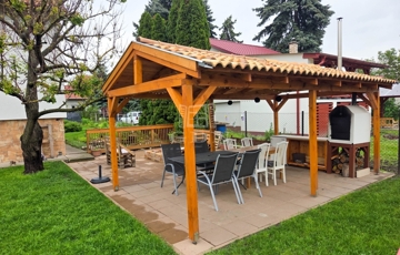 Az udvarban egy tágas fedett terasz / szaletli is található, ami tökéletes helyszíne lehet családi összejöveteleknek vagy baráti grillezéseknek.