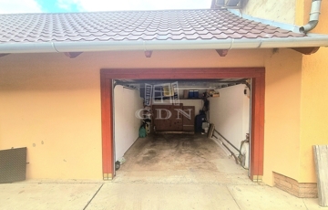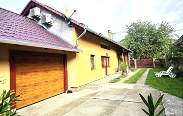 A gondozott kertben fedett szaletli, zárt garázs épült.
