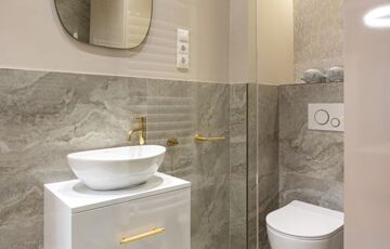 The apartment has been renovated to premium standards, featuring elegant chevron oak parquet flooring, high-quality tiles and sanitary ware, and designer furniture throughout. During the renovation, all electrical and plumbing systems were replaced, and new doors and windows were installed.