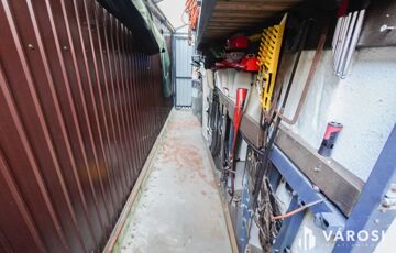Akár 2 autó parkolására is alkalmas előkert, családi vagy társasági életre alkalmas hátsókert mellett az oldalkertben méretes, zárható tároló.