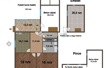 -emelet: egyterű helyiség (ytong falazat)alápincézett kivitel.