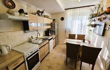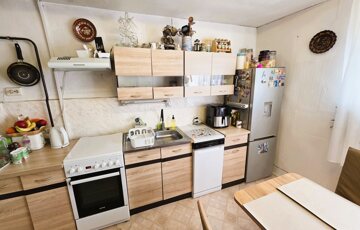 A masszív, vegyes falazatú ház fa, redőnnyel ellátott ablakokkal és tartós cserépfedésű tetővel rendelkezik. A fűtésről gázkonvektorok, kályha és hűtő–fűtő GREE klíma gondoskodik, a melegvizet gázbojler biztosítja. Az ingatlanban 3 szoba, tágas konyha, előszoba, fürdőszoba (2025-ben felújítva), külön WC, spájz és tároló található.