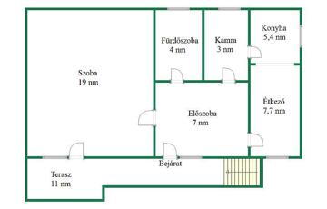 Továbbá rendelkezésre áll egy 8 m²-es pince, amely kiváló tárolási lehetőséget nyújt. Az ingatlanhoz tartozik egy kb. 60 m²-es saját kert is, amely ideális kertészkedésre, kikapcsolódásra vagy kisebb kerti programokra.