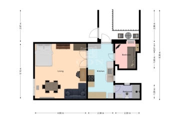 Az ingatlan 44 négyzetméteres, ideális választás egyedülállóknak vagy fiatal pároknak.