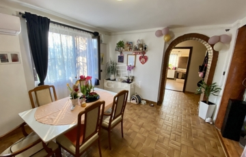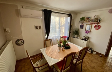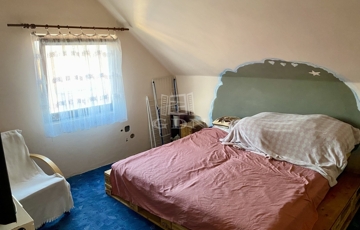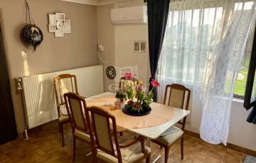 A 143 négyzetméteres lakóterület egy 706 négyzetméteres, rendezett dupla telken helyezkedik el, amely elegendő teret biztosít pihenéshez, kertészkedéshez vagy akár családi programokhoz is. Az ingatlan belső elrendezése átgondolt és praktikus: a földszinten egy tágas nappali, konyha, étkező, kamra, fürdőszoba, valamint külön WC kapott helyet, míg a tetőtérben három és fél szoba, valamint egy fürdőszoba WC-vel került kialakításra. A ház így kényelmes életteret nyújt akár nagyobb családok számára is.