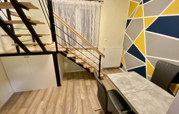 Az épület két különálló lakrészből áll, egy 90 nm-es , 3+1 félszobás, valamint egy 72 nm-es, 2+2 félszobás, külön bejárattal, saját mérőórákkal.