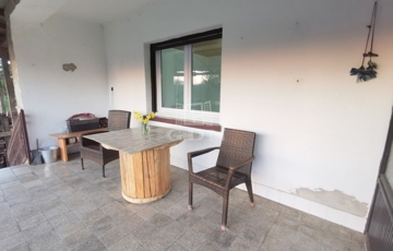 A ház praktikus elosztású, helyet kapott benne 3 szoba és egy nappali, amelyek kényelmes életteret biztosítanak egy család számára. A bejárat előtt egy nagy, fedett terasz található, amely tökéletes helyszíne lehet a pihenésnek, családi beszélgetéseknek vagy baráti összejöveteleknek.