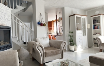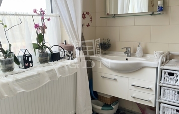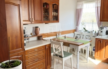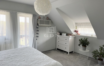 Az ingatlanba lépve az egy légtérben található közlekedő, konyha-étkező, nappali részre érkezünk. Innen nyílik egy sarokkádas fürdőszoba, egy mellékhelyiség, a lépcsőház az emeletre, illetve a házban lévő fűtött garázs felőli bejárat. A nagyméretű műanyag ablakoknak köszönhetően az egész élettér világos és barátságos. A nappaliból egy fedett terasz biztosítja a kertkapcsolatot. Az emeleti szinten két félszoba, egy fürdő w.c.-vel, valamint egy erkélyes hálószoba kapott helyet, kilátással a Gödöllői dombságra. A garázson keresztül érhető el a mosókonyha és kazánház ahonnan szintén kiléphetünk a kertbe, valamint a nagyméretű spájz is.