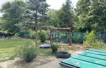 Az épület a 90-es években beton alapra, tégla falazattal épült, külső szigeteléssel ellátott, betoncserép tetőzettel rendelkezik (110 nm). A parkosított kertben (885 nm) medence, a kert végében kutya kennel, tárolók és baromfi tartásra kialakított alkalmas udvarrész is található a málna, eper és veteményes kert mellett. Az előkertben egy fedett autóbeálló valamint még egy gépkocsi beálló is található.