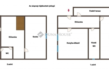 Alsó szint: konyha étkezőnappali egy légtérben fürdőszoba WC-vel