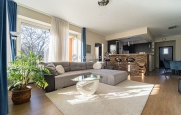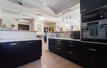 A lakótér kényelmes kialakítású: 3 különnyíló hálószoba, 2 fürdőszoba, 2 WC és egy dolgozószoba került kialakításra.