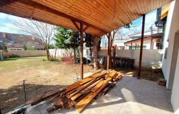 Eladásra kínálok egy 140 nm nagyságú téglaépítésű felújítás alatt álló 2 szintes ikerház felet. A földszinten hatalmas amerikai konyhás nappali, fürdőszoba, és egy külön bejáratú önálló lakrész: szoba (akár iroda) kis fürdőszobával és fedett terasz találhatóak. Az emeleten 4 hálószoba, fürdőszoba, közlekedő várja lakóit. A nyílászárók műanyagra lettek cserélve. A fűtés gázcirkó készülékről működik. A kert rendezett. 3 autó számára fedett beálló biztosított. Az épület hőszigetelést kapott. A tető is meg lesz újítva. Iskola, óvoda, rendelő a közelben.