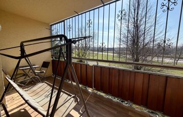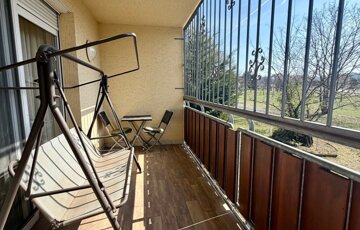 A nagy erkély tovább növeli a komfortérzetet, amely kovácsoltvas ráccsal védett, így biztonságos és jól használható kültéri térként szolgál.