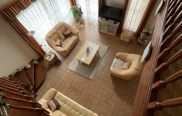 A földszinten, mely 188 m2, a szobák kivételével az összes helyiség járólapozva, ahol padlófűtés biztosítja a meleget, a tetőtér 171 m2. Az összes nyílászáró fából készült, thermo üvegekkel ellátva, ezek redőnnyel szereltek. A dupla beállós garázs teteje be lett építve, kiváló lehetőség vállalkozásnak, régebben varroda üzemelt ott.