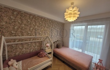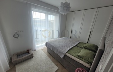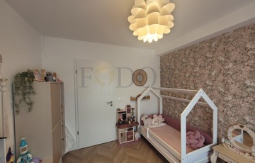 A lakáshoz 2 autó számára kényelmes, fedett parkoló és egy tároló is tartozik, amelyek az árban benne vannak. A vételár a gyerekszobában lévő bútorokon kívül tartalmazza a teljes berendezést, beleértve az igényes, minőségi konyhabútort, a beépített sütőt, főzőlapot, mosogatógépet és az előszobabútort.