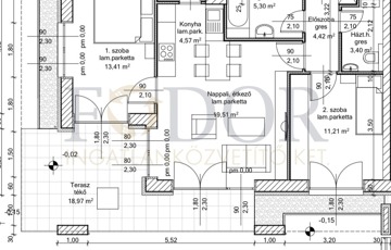 E szemet gyönyörködtető, 63 m²-es földszinti lakás porotherm 38-as téglából készült, és 16 cm-es grafitos szigeteléssel rendelkezik, ami kiváló hőszigetelést biztosít. A lakás kialakítása amerikai konyhás nappali + 2 kényelmes szobával tökéletes lehetőséget kínál a családok számára.