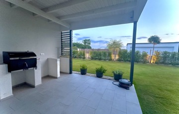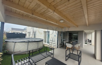Az 50 m²-es terasz ideális helyszínt biztosít a közös családi ebédekhez, baráti beszélgetésekhez és aktív pihenéshez, ahol élvezheti a napsütést és a természetet.