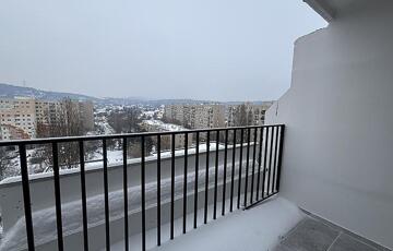 A lakás két szobával, külön ebédlővel és erkéllyel rendelkezik, ahol a magas emeletnek köszönhetően a kilátás zavartalan és különösen látványos.