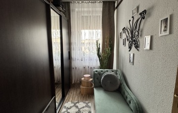 Az ingatlan praktikus elrendezésű, külön étkezővel és gardrób helyiséggel is rendelkezik, így kényelmes és jól kihasználható életteret biztosít. A lakáshoz egy 4 m²-es erkély is tartozik, amely kellemes lehetőséget nyújt a pihenésre.