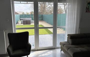 A 111 nm-es lakás (ebből 100 nm fűtött lakótér) egy 190 nm-es telken helyezkedik el, praktikus elrendezéssel. A nappali mellett három külön nyíló hálószoba biztosít kényelmes életteret, így ideális választás családok számára. A világos nappaliból közvetlen kijárat nyílik a hangulatos, műfüves hátsó kertbe, amely holland pázsittal burkolt, gondozásmentes zöld környezetet kínál. Az előkert és a hátsó kert is rendezett, privát teret biztosít a pihenéshez.