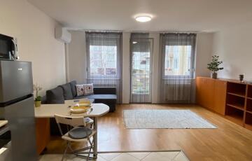 IX. Klinikák állomás közelében a Viola utcában rendezett, liftes új építésű ház I. emeletén kiadó 36 nm-es, stúdió jellegű (egy légterű), ERKÉLYES, fiatalosan bútorozott és gépesített lakás!