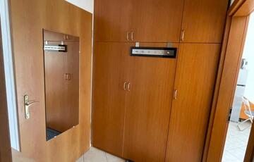 Az előszobában hatalmas beépített szekrény könnyíti meg a pakolást.