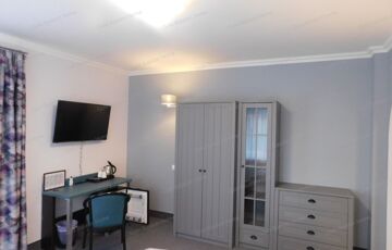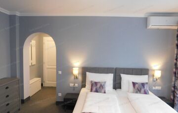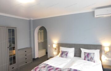 - szintenként 4 egy szobás apartman erkéllyel, legfelső szinten 2 két szobás apartman, földszinten kiszolgáló helyiségek, bár, recepció, az udvarról egy külön bejáratú apartman