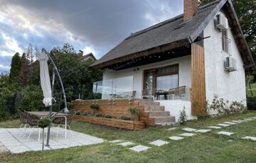 A kitűnő statikai állapotban lévő, a teljesség igényével, belsőépítész tervei által felújított, belterületi, BALATONI panorámás, tetőtér beépítéses nyaraló, csendes, zöldövezetben helyezkedik el a település északi oldalán az erdő szomszédságában. LKe1-Sz övezet (kertvárosias lakóterület, 30 %-os beépíthetőség) ezáltal a nyaraló bővíthető.