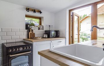 - fűtés - hűtés: telefonos applikációról is vezényelhető NordArt elektromos panelek és hűtő/fűtő klíma mindkét szinten, kiegészítő fűtésként, felújított „búbos kemence”