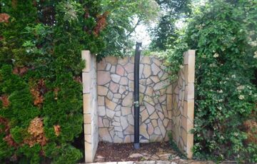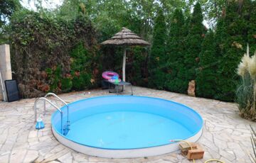 - kerti grillező, kerti medence napkollektoros zuhanyzóval a parkosított udvaron