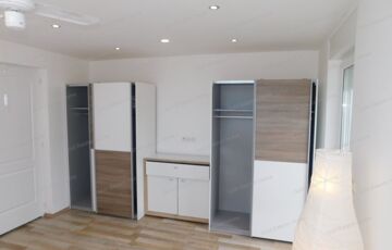 - két külön bejáratú apartman az emeleten: amerikai konyhás nappali, hálószoba, fürdőszoba, erkély, a másik apartman igény szerint alakítható ki, befejezése az új tulajdonosra vár