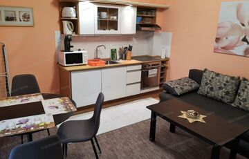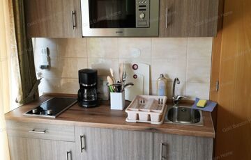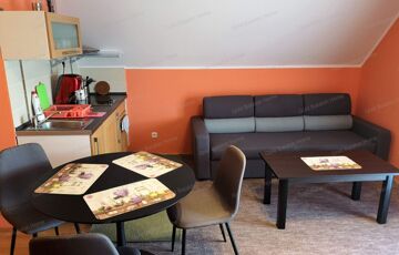 - 2. emeleten összesen 3 apartman: 2 db stúdió (szoba, zuhanyzó + WC, erkély) és 1 db. 2 szobás apartman (konyha-étkező-nappali, hálószoba, zuhanyzó+WC, erkély)