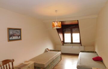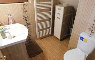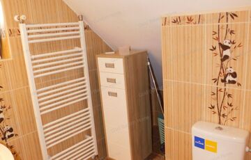 - tetőtér: közlekedő, folyosó beépített szekrényekkel, 3 hálószoba + 1 félszoba, fürdőszoba zuhanyzóval és WC -vel