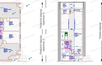 - apartman 1 és 2: konyha-nappali-étkező, zuhanyzó+WC, hálószoba