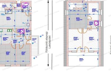 - földszint: WC, közlekedő, 2 hálószoba, konyha-étkező, nagy nappali, fürdőszoba + WC