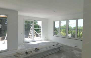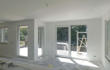 - szerkezetkész állapot: külső nyílászárók, szigetelés, színezés, falak vakolva, víz, villany alap csövezve – vezeték nélkül