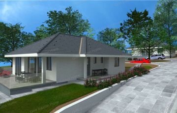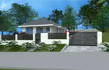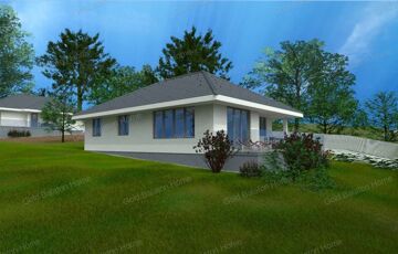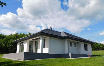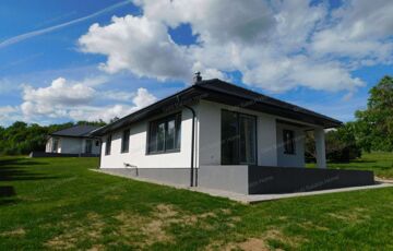 Egyszintes, 129 nm-es CSALÁDI HÁZ nagy nappalival, 3 hálószobával, részben fedett teraszokkal eladó.