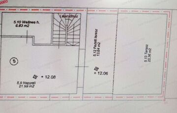 - emelet: nappali, fürdőszoba+WC, 13,64 m2-es fedett terasz, 23,36 m2-es nyitott terasz – csodálatos panorámával a városra