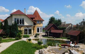 - parkosított udvar, gondozott kert, gyönyörű kerti tó, saját erdőrész
