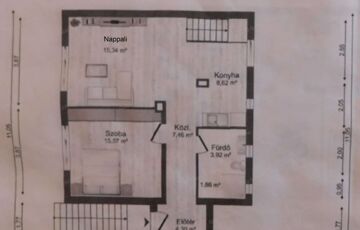 - emelet: előtér, közlekedő, hálószoba, amerikai konyhás nappali-étkező