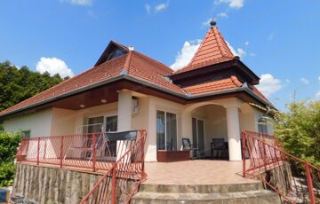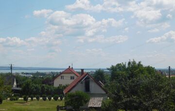 Egyszintes, egyedi stílusú BALATONI PANORÁMÁS CSALÁDI HÁZ 2060 m2 –es TELEKKEL eladó. A lakóépület földszintes, magas tetős, a padlástér beépítetlen